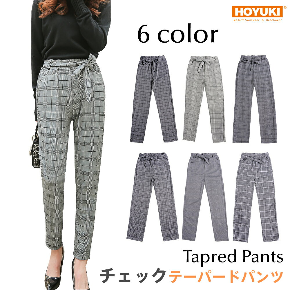 テーパード パンツ レディース ファッション リボン付き フォーマル カジュアル ストライプ ストレッチ感 機能性 ポケットあり 楽ちん パンツ 細見 S/M/L ママ お出かけ オフィス ワイドパンツ