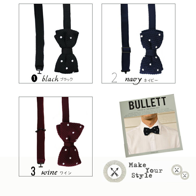 品 名 ニット生地ドット柄の蝶ネクタイ サイズ [size]フリーサイズ [横幅] 10cm [縦幅] 5cm [-] -cm [-] -cm [-] -cm [-] -cm 素 材 表地:ニット 色展開 ┃ブラック┃ネイビー ┃ワイン┃ 伸縮性 なし 透け感 なし 備 考 - 洗濯方法 洗濯時多少の色落ちがありますので、ほかのものと一緒に洗わないでください。