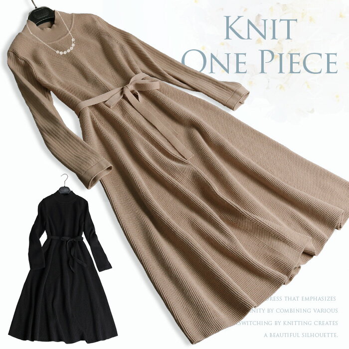特別クーポン配布中!! ニット ニットワンピース ワンピース シンプル 秋 冬 フレア ニットワンピ リブ お呼ばれ パーティー 上品 二次会 ドレス 長袖【新作】上品な編み毛様デザインのニットワンピース[NO.10-82-223](2209)