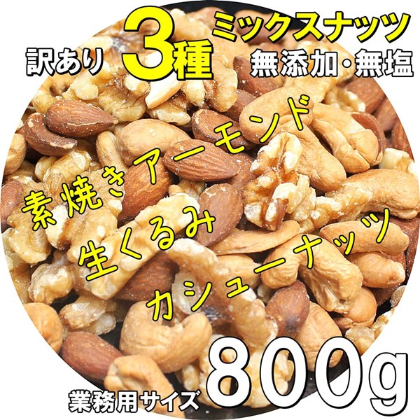 お早目に ■商品名■ 訳あり3種ミックスナッツ ■名称■ 木の実 ■原材料■ アーモンド(米国産)くるみ(米国産)カシューナッツ(ベトナム産) ■内容量■ 800g ■賞味期限■ 120日〜90日 ■保存方法■ 直射日光・高温多湿を避け、冷暗所にて保存してください。