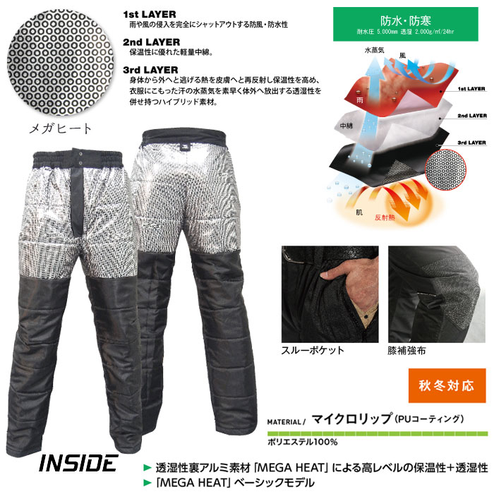 商品詳細 【MEGA HEAT — メガヒート】身体の熱を反射し、高レベルの保温性を発揮する呼吸する裏アルミ「MEGA HEAT」を搭載したシリーズ。