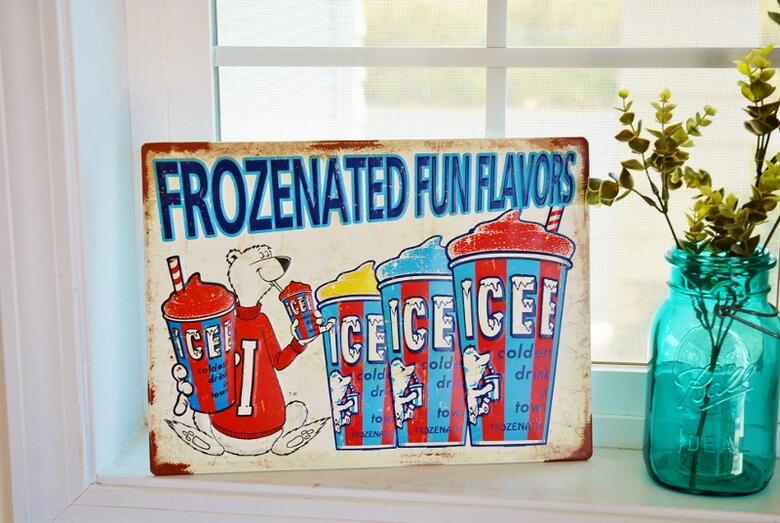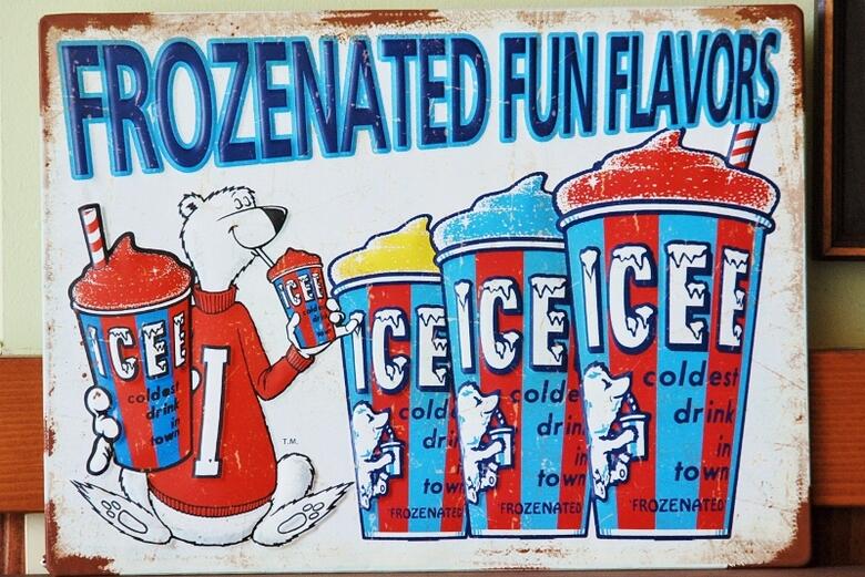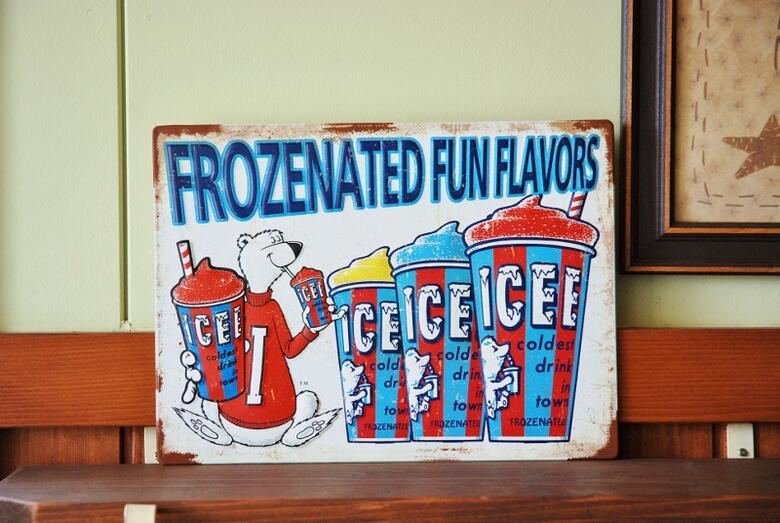 あす楽】欧米 アメリカ USA 版 FROZENATED FUN FLAVORS フローズン フレーバー ブリキ TIN サイン 看板 ボード アメリカン フレンチ カントリー インテリア 雑貨 酒場 アイスクリーム スイーツ シャーベット 白くま テディベア ホワイトベアー